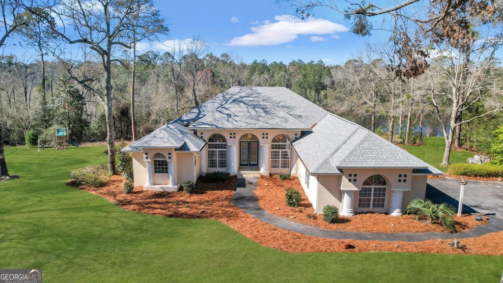 This immaculately kept home features a swimming pool, pond and covered boat dock! This home features a large open kitchen with granite countertops, the spacious living room overlooks the pool and pond, the large primary bedroom features hard wood flooring, a walk in closet, dual vanities, a soaking tub and separate shower! The sunsets over the pond are absolutely breath taking!! This home features a large sunroom perfect for an office or work out room! The home is situated on a cul-de-sac in an incredibly quiet and safe neighborhood! Roof is only 1 year old! Don't let your forever home slip away!!!