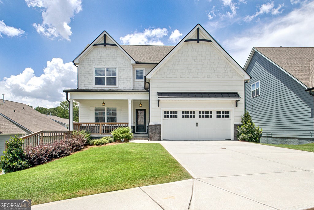 Only 2 years young is this impeccably maintained basement home featuring a primary suite on the main level in addition to a second main level guest bedroom/bathroom as well. A large white kitchen with granite countertops and stainless steel appliances looks out into the family room with gas-burning fireplace giving you the perfect open concept floor plan. A door from the family room leads to a covered deck overlooking a large, flat backyard. Upstairs are two more spacious bedrooms that share a jack-and-jill bathroom, each with a spacious walk-in closet, as well as an office/study/flex area. This home also features a large daylight, walk-out basement level at with over 1500 sf of framed out space and an area stubbed and ready for a bathroom. A two-car garage is accessible on the main level, as well as front entry on a rocking chair porch. With only 16 homes in this subdivision, the Georgian is the perfect place for you to call home, conveniently locatde with easy access to I-85, Ashley Park (Newnan's premier shopping and dining complex) as well as everything Newnan has to offer including the LINC walking trail! (To help visualize this home's floorplan and to highlight its potential, virtual furnishings may have been added to photos found in this listing.)
