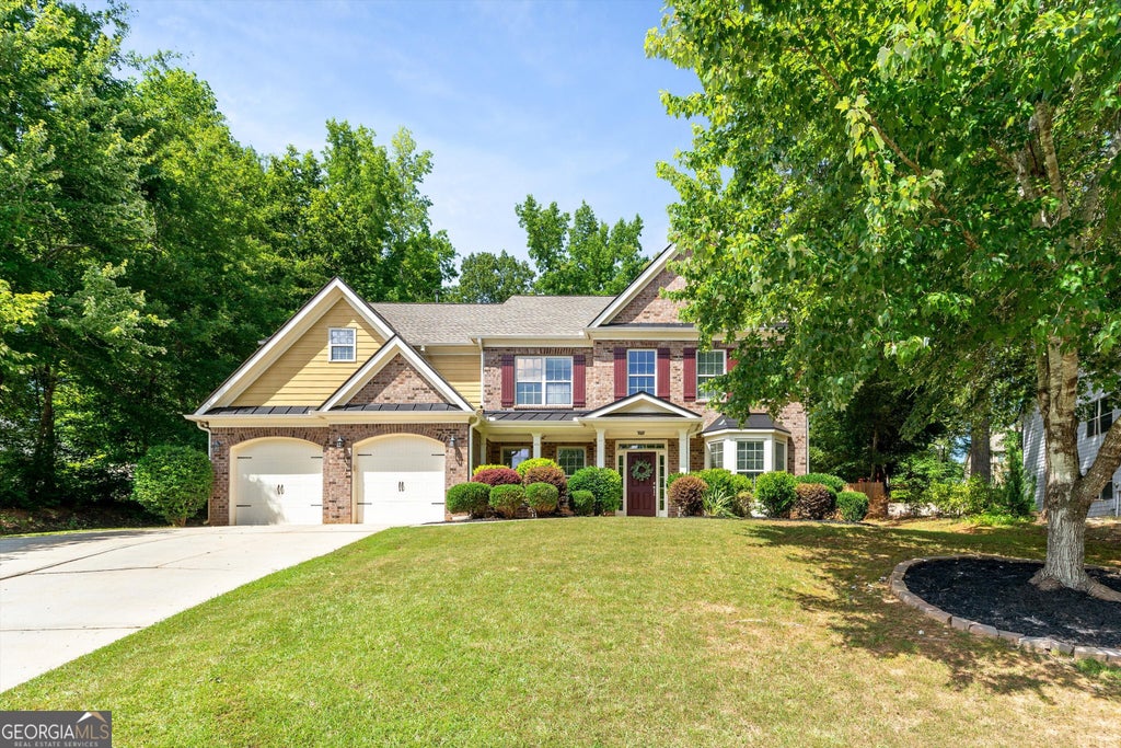 Welcome to Senoia's Heritage Pointe neighborhood! This move-in ready, 5-bedroom, 3-bath home a true standout. Set on a spacious lot with fenced backyard, the home offers plenty of room for everyday living and entertaining, all within a community featuring resort-style amenities like a clubhouse, pool, and tennis courts. Step inside to an open, light-filled floor plan with hard-surface flooring throughout-no carpet! The kitchen is a highlight that offers white soft-close cabinetry, Quartz countertops, designer tile backsplash, and stainless steel appliances (refrigerator included), and directly open to a two-story living room featuring custom built-in bookshelves. The main level also includes a full guest suite with an adjoining bath. Upstairs, the primary suite features a cozy reading nook and a spacious bathroom with dual vanities and a separate tub and shower. Secondary bedrooms are generously sized, and the guest bath includes dual vanities with granite countertops and durable LVP flooring. Recent home updates include a new A/C compressor and ductwork, newer roof, refreshed kitchen appliances (range, dishwasher, sink, faucet), and updated lighting and fans throughout. Move-in ready and conveniently located, this home strikes the perfect balance of comfort, function, and style in a welcoming community.