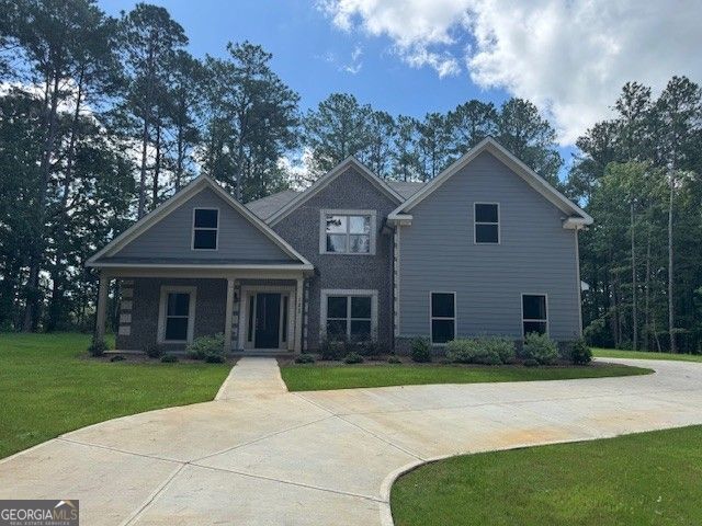 : This new construction home features 4 bedrooms, 3 and a half baths, and a two-car garage. On the main level is a formal dining room, a twostory family room, a laundry room, a kitchen with granite countertops, hardwood floors, stainless steel appliances, an island, and a pantry, and the primary suite with a sitting room. The second floor features three secondary bedrooms and two secondary baths