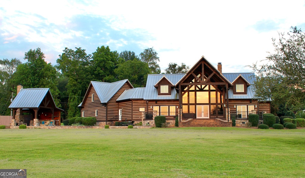 Nestled amidst the serene beauty of nature, this luxury lake property offers an unparalleled retreat for those seeking both tranquility and opulence. The estate boasts expansive, panoramic views of the shimmering lake, visible from every corner of the exquisitely designed home. Inside, the property features high-end finishes, including granite countertops, custom cabinetry, and state-of-the-art appliances in the gourmet kitchen. It features top-of-the-line Anderson doors and windows throughout. It also includes a Sonas Home audio system enhancing the entertainment factor. Each bedroom is a private sanctuary, offering ensuite bathrooms and walk-in closets. A bonus room with built-in bunk beds and a spacious game area provides the perfect spot for family fun. The open-concept living spaces flow seamlessly, leading to a grand outdoor patio complete with a custom pool, perfect for entertaining or enjoying the peaceful surroundings. Enjoy the best of outdoor living with a fully equipped kitchen and entertainment space, a sparkling pool, and a wired and plumbed boat dock complete with a party deck providing easy access for boating and water sports. A well house, irrigated landscaping, and a seawall ensure both beauty and function. There's no shortage of space here-whether it's the oversized garage built for boats and vehicles or the versatile storage building with rollup doors that could easily be transformed into a charming cottage.