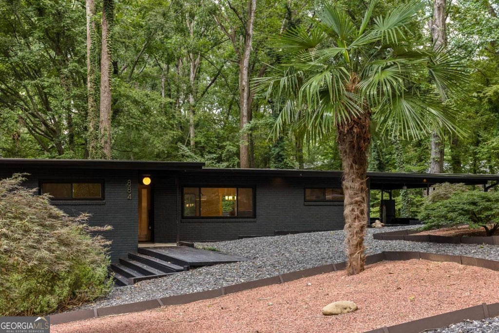 Welcome to 884 Vistavia Circle, a rare midcentury modern Decatur property that gives you all the beauty of living in the woods without the hassle of maintaining a yard. The custom dryscaped front yard is thoughtfully designed with stone, slate, and plantings that thrive with little care. No grass to mow, no weekend yard work, just pure curb appeal. Inside, light-filled living spaces flow easily from the updated kitchen to the dining and living rooms, all opening onto a treetop deck perfect for morning coffee or evening entertaining. The primary suite is a serene escape with its spa-like bath, and two additional bedrooms share a beautifully finished hall bath. But the real bonus? A fully independent lower level apartment with its own exterior entrance. It includes a full kitchen, dining area, living room, laundry, one bedroom, and one bath, ideal for house hacking, short- or long-term rental income, or private guesta quarters. The unfinished portion of the basement offers even more possibilities: connect it to the main house to expand your living space, add a second bedroom to the apartment for more rental revenue, or create the ultimate workshop, gym, or studio. With three levels of decks and patios, this home is designed to connect you to its wooded surroundings at every turn. Updates include a new roof (2022), multi-zone HVAC (2021), Tesla charger, and mudroom with built-in storage and dog door. Just steps from Lullwater Nature Preserve and a block from W. D. Thomson Park, you're minutes from Emory, CDC, and Toco Hill shopping while feeling worlds away from the bustle. This home is a true opportunity: low-maintenance living with built-in income potential and endless ways to make the space your own.