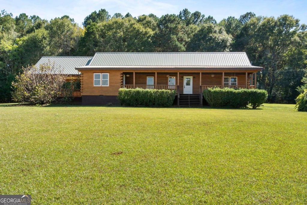 This charming, custom built log cabin is perfectly situated on 11.5 private acres and offers a peaceful retreat with modern updates throughout. A long, tree lined driveway welcomes you home as you cross over a year round creek, setting a serene tone from the moment you arrive. The land includes mature vegetation, a producing muscadine vine, and a mix of cleared acreage and fenced pasture ideal for horses, livestock, or gardening. To the side of the house, you'll find over a dozen mature pecan and walnut trees, along with persimmon trees, adding to the natural beauty and bounty of the property. Nature lovers and outdoor enthusiasts will appreciate the hunting potential and quiet surroundings, while families will love being in the highly sought after Rosemont School District. The main home has been completely updated, featuring a new HVAC system, energy efficient windows, and new exterior doors. Inside, the home offers 4 spacious bedrooms and 3 full bathrooms in a desirable split bedroom floor plan, providing added privacy for the primary suite. The open concept main living area boasts sky high ceilings and plenty of natural light. It highlights the custom built beam! The kitchen is equipped with granite countertops and flows beautifully into the living and dining spaces, creating a welcoming area for everyday living or entertaining. The primary suite is a true retreat, featuring high ceilings, a private loft, a walk-in closet, and double vanities. It also includes an attached bonus room perfect for a home office, sunroom, or nursery. A spacious laundry room adds everyday convenience, and an additional loft bedroom with a full bath upstairs makes a great space for guests or teens. Both the front and back of the home feature full length covered porches, with a porch swing ready for you to enjoy the peaceful views. Additional features include an attached two car carport and a second carport ideal for a boat or extra storage. On the property, you'll also find a detached guest house that can serve as a teen suite, in-law quarters, or even potential rental income. This unique property offers privacy, comfort, and flexibility all within a short drive to town conveniences. It's truly move in ready and waiting for you to make it your own. Call today for your private tour! 678-378-7519