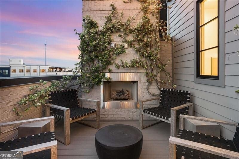 Luxurious, sleek, and modern, custom/designer outfitted, four-floor (with elevator), 3-bedroom, 3 full bath and 2 half bath, townhouse on the Beltline in Inman Park. Adjacent to Krog Street Market with beautiful downtown Atlanta city views to the west and green Inman Park views to the east. Starting from the top: Fourth floor features a beautiful custom bar with riveted aluminum ceiling and DOUBLE rooftop terrace, one with an alfresco dining area with city views perfect for sunset, and the other with a cozy patio with mature jasmine vines + fireplace. Along with a half-bath, this rooftop floor is the ultimate entertainment space! Moving down to the third floor, you find the primary suite with fireplace, built-in custom gun metal cabinets, large walk-in closet, 55" TV, and full ensuite with double-sinks. Opposite the primary suite is the library-come-office with custom white-oak shelving and views of the Beltline and its tree tops, with floor to ceiling windows, perfect for working from home. This room, which can be used as a bedroom as well, has its own full bath. Keep moving down to the main living area with 9' ceilings and you find perfect indoor entertainment and living space. Starting with the chef's kitchen outfitted with Wolf/Thermador appliances including built-in double-ovens, a steamer, dishwasher, four-burner stove with grill top, and paneled fridge/freezer + a sexy copper hood. The dining area includes a built-in banquet seating with floor-to-ceiling shelving, and wine fridge. The main living area adjacent to the kitchen/dining also features a Francoise mantel and designer furniture with a 55" TV and direct views of the Beltline. The ground floor level has an ensuite guest bedroom, providing guests with complete privacy. This floor also contains the 21ft wide garage with space for 2 SUVs and includes an electric vehicle charging port. This perfect urban living home is just steps from epic eateries like Superica, Boccalupo, Staplehouse, Rathbun's Steak, and dozens more.