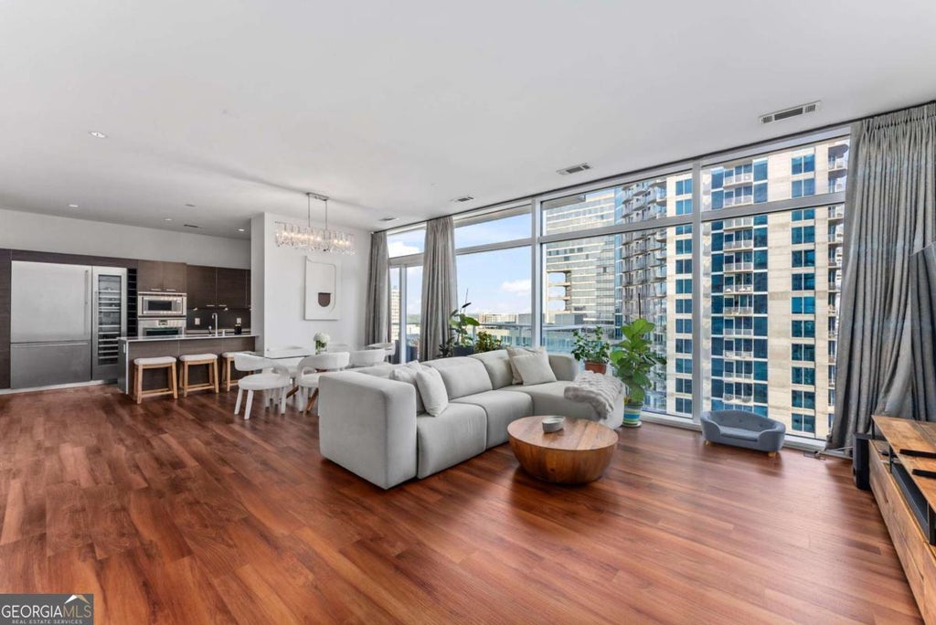 Enjoy Midtown and downtown views from TWO terraces in this sophisticated city home that's priced to sell in the soon to be JW Marriott Residences! Brighten by floor to celling windows to take in sunrises in the morning and the twinkling skyline at night, this home features a custom German Alno kitchen with upgraded Asher grey marble counter tops and Gaggeneau appliances open to the dining room and living room. Custom light fixtures and custom closetry can be found throughout the home including the lux primary suite with his & her closets and an indulgent spa bath complete with a walk in shower, soaking tub and his and her vanities. The guest suite is no less impressive with a walk in closet big enough to double as a home office! Indulge in hotel services including 24 concierge, valet parking, spa, gym, sky pool and more! This is home is not to be missed.