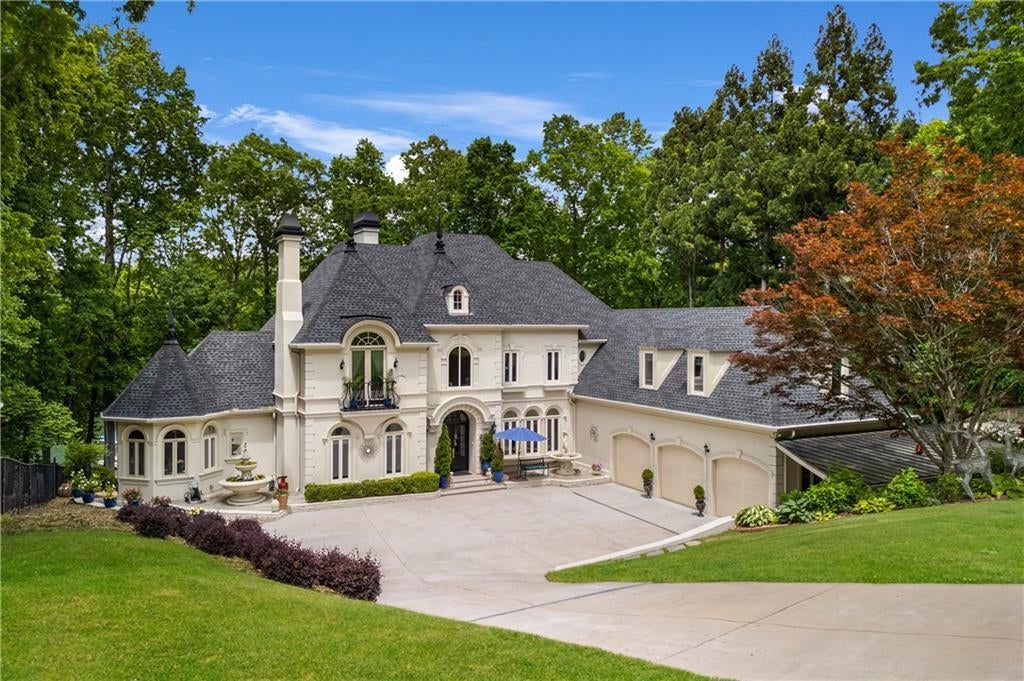 JUST REDUCED $300,000- NOW PRICED $500,000 BELOW APPRAISAL! BE SURE TO WATCH THE PROFESSIONAL VIDEO TOUR! Extraordinary Lake Lanier Estate with Private Double Slip Dock Experience luxury living at its finest in this one-of-a-kind trophy estate, perfectly positioned on the shimmering shores of Lake Lanier. Behind stately remote gates, this architectural masterpiece commands attention with its French-inspired dormers, grand Palladian windows, flowing water features, and dramatic double black spires. Inside, the home is equally breathtaking—gleaming Bolivian Cherrywood floors, five fireplaces, and entire walls of floor-to-ceiling windows invite panoramic lake views into nearly every room. The expansive chef’s kitchen is equipped with quartz countertops, flat cooktops, stainless steel appliances, and an oversized breakfast bar perfect for entertaining. The primary suite is a true retreat, with direct access to the back deck, a fireplace, sitting area, and a spa-like bath featuring radiant marble floors, steam shower, a jetted tub framed by ten arched windows, and serene water views. The newly finished terrace level offers full second-living quarters, complete with a designer kitchen, quartz island, custom built-ins, hardwood flooring, and a spectacular sunroom. Step outside to a resort-style backyard, featuring a $60,000 Michael Phelps swim spa, an expansive deck spanning the full length of the home, and a two-story party dock with an upper-level lounge and hot tub—all on coveted year-round deep water. This is more than a home; it’s an unrivaled lakeside lifestyle.