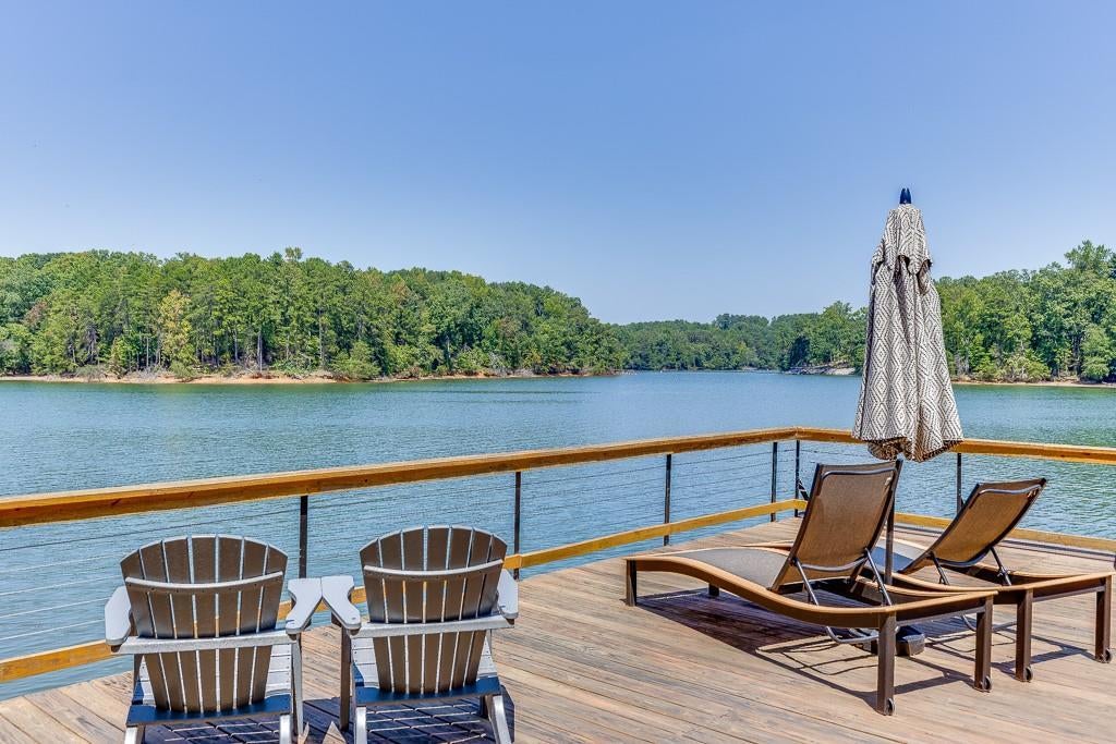 Deep Water on the South End of Lake Lanier! Turnkey Ready home with the largest party dock allowed on the lake! Step into 3441 Shoreland Drive which was constructed in 2018. This serene home is in pristine condition which features amazing lake views throughout all three levels. The main level consists of an office, open living room with stone fireplace to the light & bright kitchen which overlooks stunning Lake Lanier. Read a book in the peaceful sunroom on the back of the home. Upstairs you will find the primary bedroom with stunning views, updated bathroom and large custom closet. You will also find a guest bedroom, laundry room, full bathroom and a stunning bunkroom perfect for your guests! This home also boasts tons of storage throughout. In the partial finished basement, you can customize your own space with a large flex room, full bathroom, huge storage area. The outdoor space in this home cannot be beat! The front yard has a huge fenced in yard perfect for your pets along with beautiful landscaping and uplighting. The back of the home has a screened in porch with an adjoining open deck with the best views around. On the basement level there is a huge flagstone patio perfect for entertaining with a stone outdoor fireplace! The gentle slope to the dock also features professional landscaping and a beach area. The dock is the largest party 2 slip dock you can have on Lake Lanier! This home is peaceful and serene yet close to it all!
