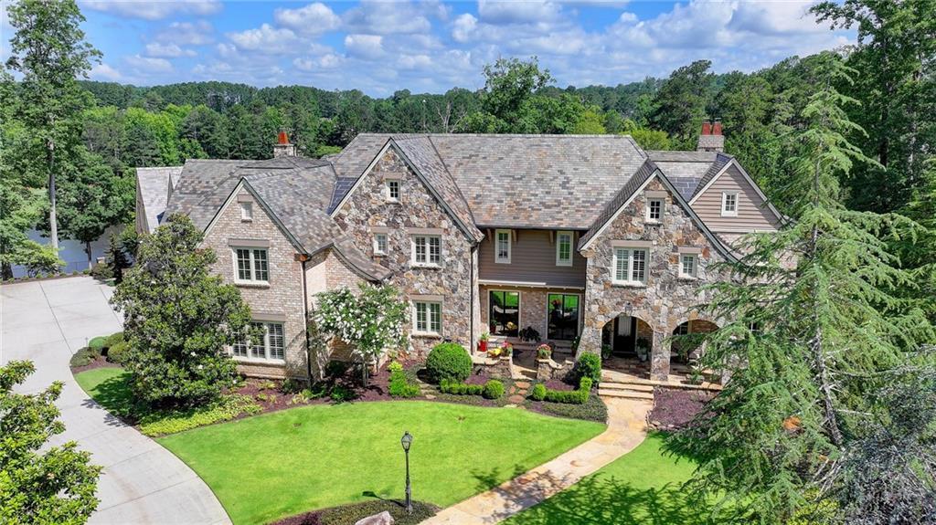 Experience unparalleled elegance in this luxury LAKEFRONT estate home, designed by award-winning T.S. Adams Studio Architects and custom built by John Willis Homes, featuring 7 bedrooms, 7/3 bathrooms, a finished TERRACE LEVEL & HEATED SALTWATER POOL on a private CUL-DE-SAC LOT. Nestled on a pristine LAKE with 370 FEET of LAKEFRONT footage, this home offers breathtaking WATER & GOLF COURSE views from every angle. This magnificent home was built with $1 million of handcrafted TENNESSEE FLAGSTONE! Step through the stone rocking chair FRONT PORCH & the custom steel doors into the groin vaulted foyer with views to the grand interior with arched entryways, premium millwork & beamed ceilings. WIDE-PLANK HEART OF PINE FLOORING & CUSTOM SCARDINO STEEL doors & casement windows in the living/dining room, kitchen, family room, terrace level living room & game room highlight the attention to detail throughout. To your left is a DINING/SITTING room with dual French doors to the stone porch & patio. To your right is the elegant OFFICE with French doors, marble FIREPLACE, coffered ceiling & double doors to the covered stone rear porch. The heart of the home is a gourmet kitchen, designed for entertaining—featuring BEAMED ceilings, DUAL islands, 2 sinks, custom cabinetry, granite countertops, VIKING range with double ovens, a VENTED HOOD, built-in SUB ZERO fridge, walk-in pantry, WINE fridge & a sunlit, paneled DINING area with beamed ceiling. A warm & inviting family room with shiplap BEAMED ceiling, custom built-ins & a striking STONE FIREPLACE adds warmth & charm. A wall of custom doors folds open to the covered stone patio with built-in dual gas/charcoal grill, beamed ceiling & stunning views of the POOL, LAKE, golf course & backyard. This expansive level also features a large GUEST room with full en-suite bathroom, a LAUNDRY room with sink, a convenient MUD ROOM & powder room. DOUBLE STAIRCASES lead upstairs to the second level. The MASTER SUITE is a serene retreat with a SITTING area, hardwood floor & spa-inspired bath with custom cabinetry, marble countertops, JACUZZI tub, large tile shower, massive walk-in closet with custom cabinetry & a gorgeous, PRIVATE STONE PATIO with panoramic views of the LAKE & GOLF COURSE. This level also features 4 expansive secondary bedrooms, each with full, tiled en-suite bathrooms & walk-in custom closets. A convenient SECOND LAUNDRY ROOM with sink & custom cabinetry & CRAFT ROOM with custom cabinetry complete this level. The stunning TERRACE LEVEL is an entertainer’s dream & features a custom BAR with icemaker, granite countertops & INDOOR/OUTDOOR SERVING WINDOW, a FAMILY room with bar counter, GAME ROOM, MEDIA ROOM with surround sound & a LIVING ROOM with beautiful STONE FIREPLACE. The temperature-controlled WINE CELLAR & tasting room with space for 850 bottles is exquisite! A BEDROOM/flex room with full, tiled en-suite BATHROOM & a HALF-BATHROOM complete this impressive level. Step out into the expansive stone patio with 3 distinct entertaining areas, one with a STONE FIREPLACE. Enjoy exceptional, COMPLETELY PRIVATE outdoor living across 5-star amenities, including a resort-style HEATED SALTWATER POOL with jacuzzi overlooking the lake, expansive terraces with sitting areas & EIGHT OUTDOOR LIVING AREAS & 2 FIREPLACES that capture the serene backdrop of 370 FEET OF LAKE FRONTAGE. The CUSTOM-BUILT STEEL SPIRAL STAIRCASE ESCORTS YOU FROM THE POOL DECK TO THE LAKE LANDING. The immaculate landscaping was designed by award-winning landscape design firm, Land Plus Associates. Additional features include SONOS SURROUND SOUND throughout, whole-home WATER FILTRATION & AIR PURIFICATION systems, Vermont SLATE ROOF & COPPER gutters & downspouts. This residence redefines luxury with its rare craftsmanship, resort-style amenities & a SETTING THAT IS TRULY SECOND-TO-NONE! The epitome of luxury living in THE RIVER CLUB, the most sought-after golf/swim/tennis/country club GATED community in Atlanta. Welcome home...