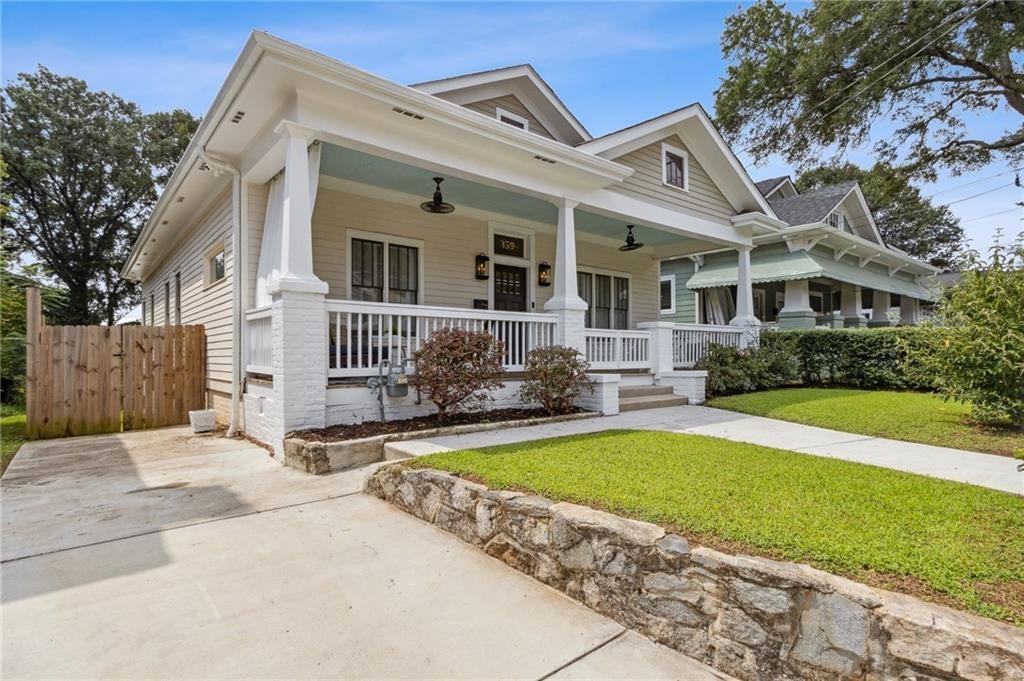Meticulously renovated 1920s bungalow with saltwater pool and city views in the heart of Old Fourth Ward! This 3BR/2BA gem was fully transformed in 2018 with a one-of-a-kind transitional design, blending timeless charm with modern luxury. Soaring ceilings, hardwood floors throughout, and an open-concept layout are anchored by the home’s original 1920 double-sided masonry fireplace, beautifully preserved as a centerpiece between the living and dining spaces. The spacious, open floor plan is ideal for entertaining. The chef’s kitchen features stainless steel appliances, a gas range, and an oversized marble island that comfortably seats four, adding both function and elegance to the heart of the home. The large primary suite boasts its own decorative masonry fireplace, a custom walk-in closet, and en-suite bathroom with a double vanity and walk-in shower. Step outside to a backyard oasis rarely found Intown, featuring a heated saltwater pool, spacious deck, firepit area, grassy lawn, and a versatile storage shed. You’re in the middle of the bustling city, but the moment you step into the backyard it feels like a private retreat. Out front, the rocking chair porch offers city views. It’s the perfect spot to unwind and watch the city come to life. Amazing central location—just minutes from the BeltLine, Krog Street Market, Sweet Auburn Market, Mercedes-Benz Stadium, State Farm Arena, and all the dining, shopping, and nightlife O4W has to offer. The quick access to 75/85 and MARTA makes getting anywhere in the city a snap!