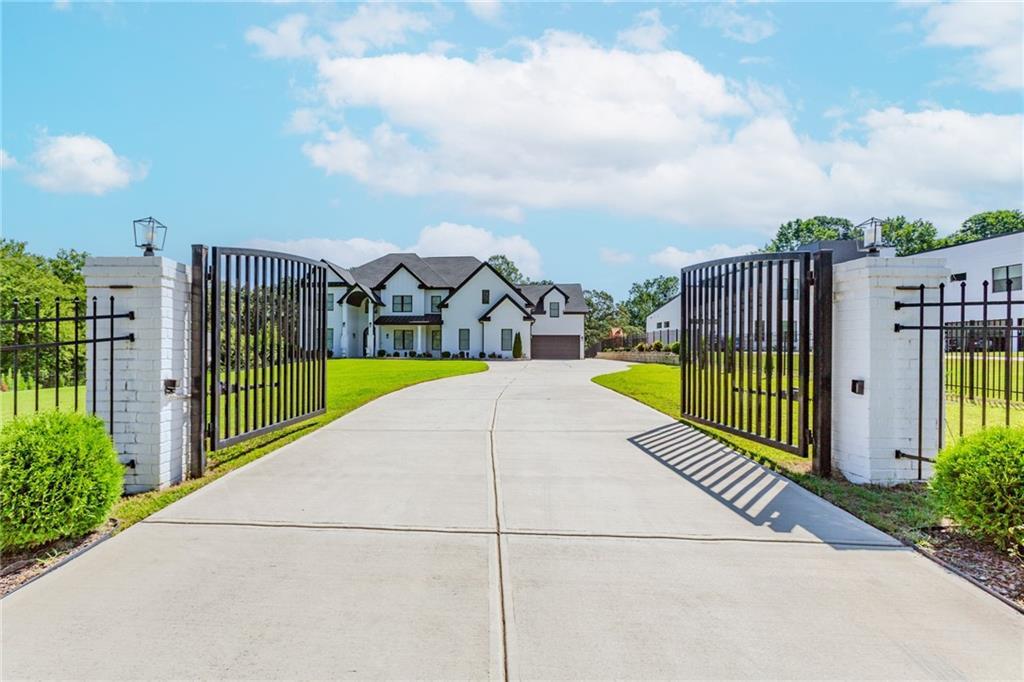 Luxury custom home is better than new and offers over 7300 square feet of pure perfection! Gorgeous iron gated front entrance, 8 added stone columns, long driveway leading to the 4 car garage, large covered stone front porch and beautiful double door entry. When you enter this home you are greeted with breathtaking marble and quartz details throughout and a massive open floor plan. Stunning kitchen with all high end appliances, quartz island and counters, high ceilings throughout, floor to ceiling quartz fireplace, amazing main level master with luxurious master bathroom. There are custom touches everywhere you look. The huge second floor entertainment area has full views down to the main living area and includes a kitchenette with quartz counters, wine refrigerator, beautiful cabinets, covered balcony facing your gorgeous backyard with new fencing, koi pond and gazebo with custom lighting and irrigation system front and back. This home is just stunning!