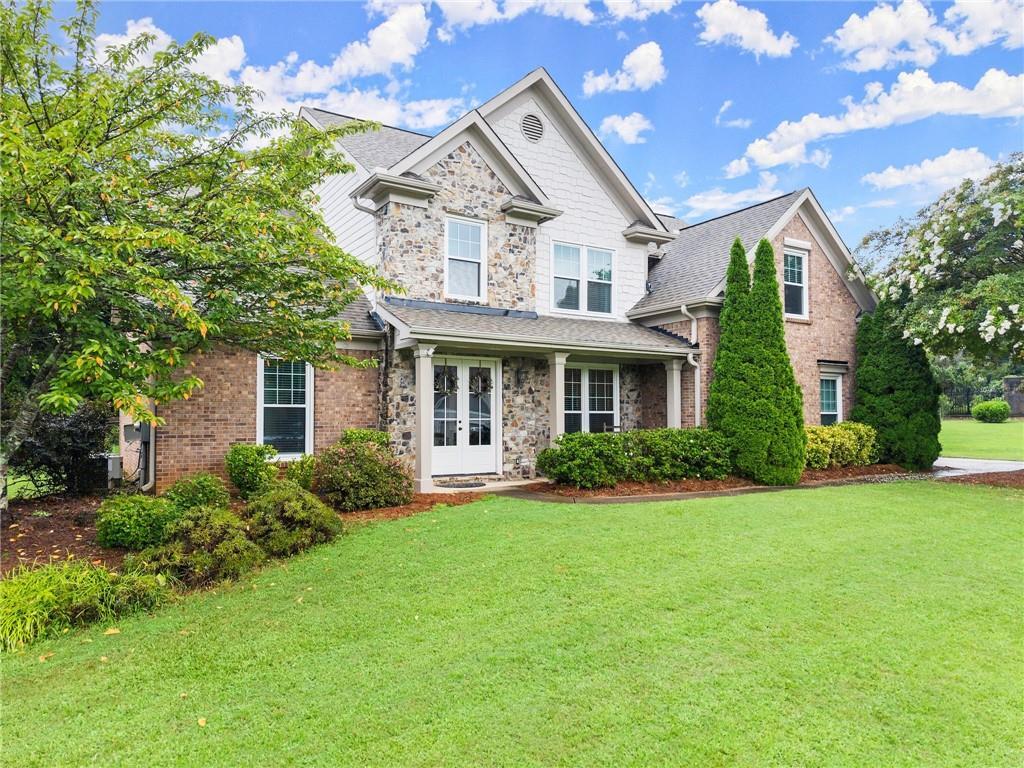 Beautiful 4-sided brick home in North Hall County, offering 4 bedrooms, 3 baths, and plenty of space for the whole family. The main level features a large living room with a stunning stacked rock fireplace, separate dining room, and a spacious kitchen with a view to the family room and breakfast area. You’ll love the oversized mud/laundry room with its own exterior entry, plus a dedicated office space. The master suite is on the main level with double vanities, a walk-in closet, and lots of room to relax. Upstairs, you’ll find 3 additional bedrooms and more space for everyone to spread out. Enjoy mornings and evenings on the covered rear porch overlooking the private backyard on a level 1.31-acre corner lot—perfect for kids to play or entertaining guests. Upgrades include new windows (2019), fresh interior paint, and a roof replaced in 2014. No active HOA, close to North Hall High School, and move-in ready. Don’t wait—this one feels like home the moment you walk in!