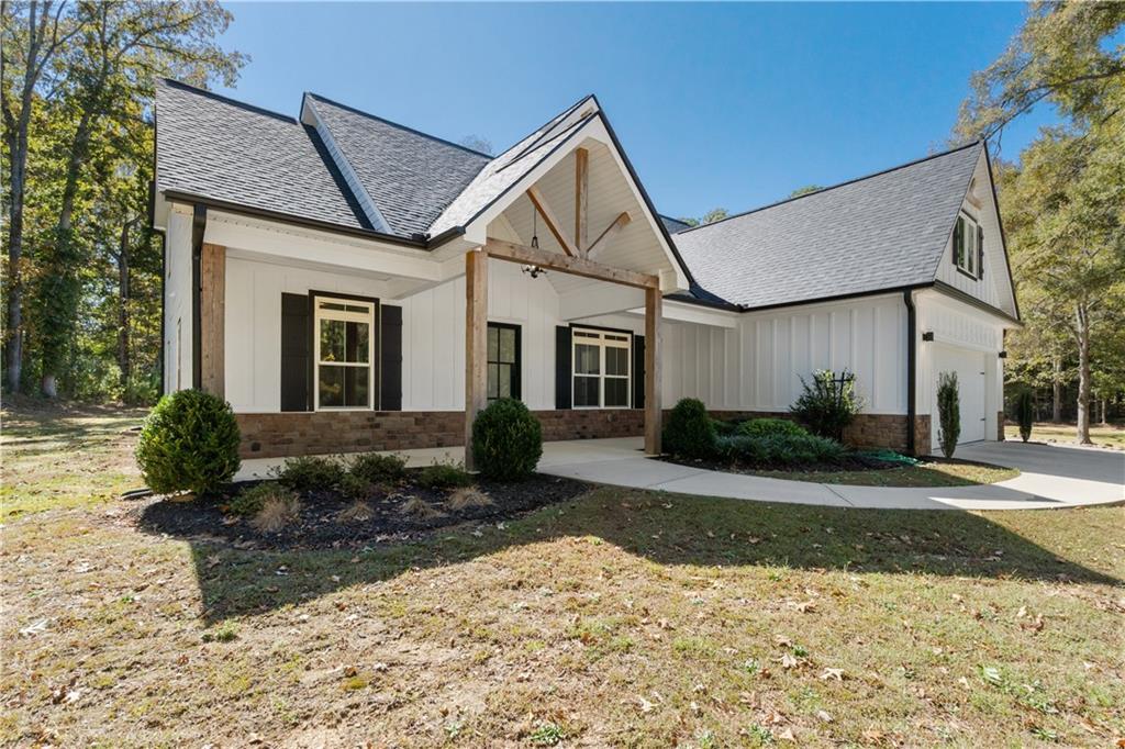 Immaculate, custom-built modern farm-house located in Tyrone, GA, just 20 minutes from Hartsfield-Jackson airport, built on a private one-acre lot with mature trees. ZERO percent down payment option available. Seller open to paying closing costs for mortgage interest rate buy-down. Low maintenance exterior with hardiplank siding/board and batten, cultured stone knee wall, and vinyl soffits/porch and patio ceilings. Custom iron front door, 100% LED owner-selected black light fixtures, and extra foundation, window, and door insulation, all contribute to very low monthly power bills, even in the warmest and coldest months. Luxury vinyl plank flooring in all rooms, white shaker kitchen/bath cabinets with grey quartz countertops, matching Kitchen Aid black stainless steel appliances, and custom black plumbing fixtures throughout. Expanded, covered back patio is perfect for entertaining with extra lighting, ceiling fan, fireplace, and views of nature and area wildlife. Upper level has an expansive suite/multi-purpose room with ensuite bath and unfinished attic has the height and square footage for potential living space/additional bedrooms. Priced below most recent appraisal value, structures have been or will be removed on adjoining lot for new farmhouse style construction, and $1M+ plus existing and upcoming home communities within 2 miles. Just a short drive to Town of Tyrone parks/shopping or a few miles to Peachtree City restaurants, etc. Sought-after Fayette County schools!