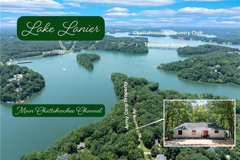 BEST DEAL ON LAKE LANIER - READY TO SELL - MAKE IT A QUICK CLOSE! Rare opportunity to own a one-level home, over finished terrace level, with big water lake frontage at an unbeatable price! No dock but many, many benefits such as picturesque water and natural views, abundance of privacy, fish, kayak and more. Also appealing about this property is the very close proximity to the downtown "historic" Gainesville Square, easy access to jump on I-985 and no HOA restrictions or fees. The home size and ranch style is the perfect primary or secondary residence or rent now and relocate later. Indulge in tranquil mornings and evenings on the deck while sipping your favorite beverage and enjoying the sights and sounds of nature. Laurel Park is only 5 minutes away for launching a boat. It's all about a tranquil and peaceful setting on this north lake peninsula, as the property borders Corps of Engineers land that stretches to the very end of the point - offering extended lake views and privacy. Additionally, the property includes a circular drive and parking pad for multiple vehicles. Interior features include luxury vinyl flooring on both floors; 3 bedrooms on the main floor including a large primary suite and bathroom; 2 additional bedrooms with a Jack and Jill bathroom and double vanity; an open and spacious great room highlighting a gas-logged stone fireplace, and a vaulted wood beam trimmed ceiling; separate dining room adjoined by a large kitchen with new Bosch refrigerator; a Whirlpool oven with gas cooktop, granite counter-tops and tiled backsplash. A finished terrace level with private entrance and deck completes this home and can be used for an apartment or in-law suite. Special features on this level include a wood-paneled family room, fireplace, a home office, an additional bedroom, a work-out room (or 5th bedroom) plus a full bathroom. Step out onto the expansive upper or lower wood deck for morning coffee, afternoon cocktails, and outdoor dining, while listening to the sound of passing boats or watching a picturesque sunset. Other noted features include natural gas connected to the home for gas heat, gas cooktop, and gas logs. This property does not have a private dock but has plenty of lake-frontage. The convenience of the location provides an easy drive to downtown Gainesville, grocery stores and retail shops, public and private schools, a variety of restaurants, Northeast Georgia Medical Center, Brenau University, and the Atlanta Botanical Gardens Gainesville location. Also, only a 30 to 45 minute drive to North Georgia wineries and mountains. No HOA, making this property the ideal location for considering a short-term rental, Airbnb, VRBO. Can't beat the desirable location, privacy, and lake atmosphere at an affordable price. Move-in ready - Bring Offer!