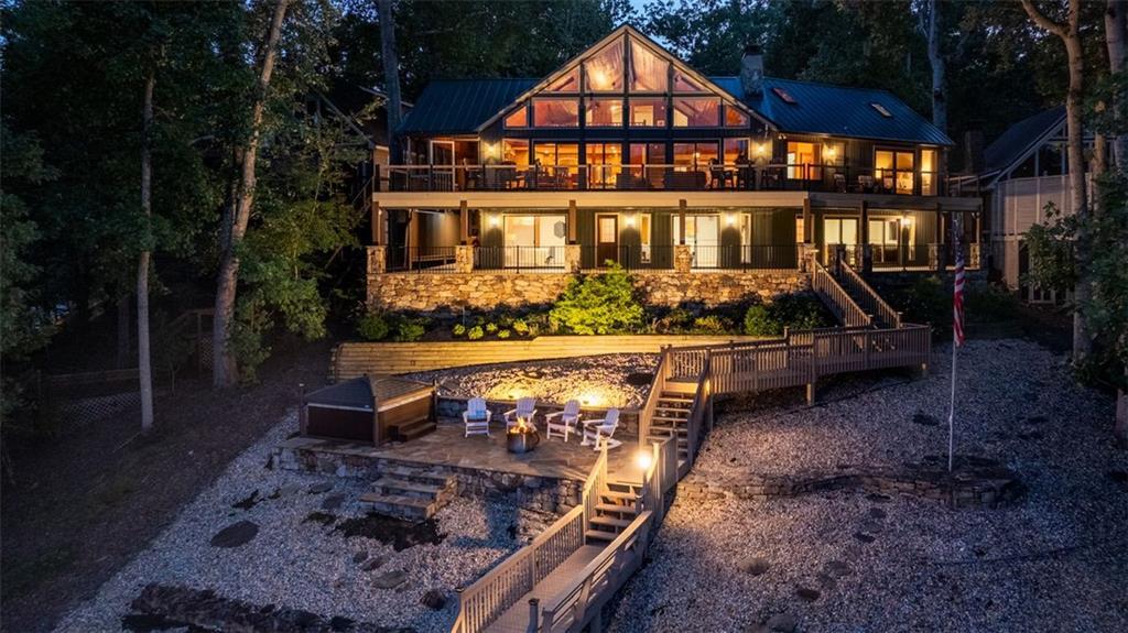 Designed with both relaxation and entertaining in mind, the home offers two expansive Trex decks, a new hot tub with automatic cover, and an oversized flagstone patio ideal for fireside evenings under the stars. The entire back of the house is framed in sliding glass doors, creating a seamless flow between indoor comfort and outdoor living. Inside, light filled spaces open to sweeping lake views from nearly every room. The main level primary suite is a warm, inviting retreat with wide plank pine floors, while the chef’s kitchen features a gas range, double ovens, and granite countertops. Upstairs, a spacious loft adds flexibility for a bunk room, office, or epic game room. On the terrace level, you’ll find three bedrooms including a private suite with its own fireplace plus an additional living room and an incredibly designed bathroom that elevates guest comfort. This level was created with gatherings in mind, offering space for family, friends, and unforgettable weekends at the lake. Modern upgrades add peace of mind with many smart home features, from smart lighting and an automated alarm system to exterior cameras. Storage is equally impressive with an oversized garage that fits two cars and a golf cart, plus a detached garage ideal for boats, jet skis, and all your lake toys. This isn’t just a home it’s a retreat, a gathering place, and a front-row seat to Lake Lanier’s most captivating views. From coffee at sunrise to sunset cruises, every day here feels like a vacation. Don’t just imagine it come experience it for yourself. This home is for the outdoor lifestyle enthusiast, under 30 mins to Atlanta Motorsports Park and Iron Mountain Off Road Park, Not to mention 30 mins to a number of hiking trails and Dahlonega and just an hour to Atlanta Airport! ** Current Depth at Dock 20ft +/- (9/17)