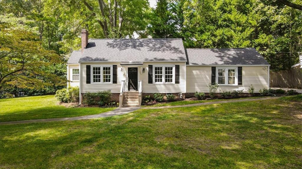 Charming 1940’s Cottage, Renovated & Expanded. Flooded with natural light, this beautifully updated 3-bedroom/2-bath cottage sits on a spacious, level corner lot just steps from Pendergrast Park. Inside, you’ll find a welcoming family room with a cozy fireplace, hardwood floors, and a graceful arched opening that leads into the dining room. The dining area flows seamlessly into the renovated kitchen, featuring granite countertops, a tile backsplash, breakfast bar, and newer appliances. A wall removal created an open-concept feel, while an adjacent sunroom with new flooring provides the perfect spot for a home office or sitting area. The primary suite addition is a true retreat, boasting vaulted ceilings, French doors opening onto a large brick patio, a spacious walk-in closet, and a spa-inspired bath with a custom vanity, tiled shower, and tile flooring. Two additional bedrooms share a newly updated bath, along with a new laundry room for convenience. Step outside to enjoy the expansive yard, complete with a brick patio, generous parking pad, and storage shed. Recent upgrades include: fresh paint, smooth ceilings, modern lighting, updated electrical panel, updated HVAC, water heater, plumbing, roof, and fixtures throughout. Hardwood flooring extends across the home, with carpet in the primary bedroom. Ideally located with easy access to I-85, Brookhaven, Buckhead, Emory, CDC, and downtown Atlanta. Lot can be subdivided into 2 buildable lots or bring your builder and raise the roof!