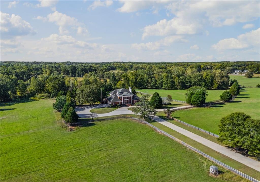 Live the Equestrian Dream. Beautiful Fox Run Farms is located in a quiet all-farm corridor of upscale farms, family farms and equestrian properties in Mansfield GA. For those seeking the "country-life" and charm of small-town living, yet quick accessibility to Athens, Atlanta, Aiken and Lake Oconee, this idyllic farm will capture your heart. This 85 acre equestrian estate holds endless possibilities, from a family compound, to a full-fledge equestrian center, a potential wedding/event venue, an income-producing property, as well as a fabulous long-term investment. The dual-entrance estate (farm/equestrian side) and (main residence entrance) hosts dual residences (main residence/farm residence) with over 85 picturesque acres of natural beauty, including a two-acre lake, rich established pastures, mature hardwoods, and a tranquil setting. The elegant iron-gated entrance invites you to the farm, followed by a picturesque 550 feet paved tree-lined drive, with a welcoming fountain enhancing the classic architecture of this brick beauty. Beautifully landscaped, there are breath-taking views of all the surrounding pastures and not a sound to be heard! Exhibiting timeless quality, the interior of this custom home is a lovely blend of "classic" ( the gorgeous entry staircase) with 2025 "comfortable" (the open floorplan off the huge kitchen, the stone-stacked hearth in family room, the outdoors-in style featuring a brand new (huge) deck running the entire length of home). Perfect for entertaining and gathering, this open concept fills the home with light and overlooks the beautiful pool and gardens area. Dine al-fresco on the "Southern-living" screened porch off breakfast area, or entertain lavishly on the huge rear deck. The large kitchen features 6-burner gas stove, double ovens, wine fridge, center island, stone countertops and backsplash, beautiful mill-work and breakfast area. The primary suite on main level opens to rear deck, includes fireplace and oversized bath with a custom dress-in cedar closet. Two front-facing rooms ( one a formal dining, the second could make a lovely home office on main) complete the main-floor footprint. The second-level (with rear staircase) features a loft, and 4 additional bedrooms with large closets, two baths. The terrace level (2120 square feet) is partially-finished, stubbed for bath, has a safe room, beaucoup storage space, and opens to outdoor spaces ( shaded patio) then pool. With its own exterior entrances, this space could easily become an in-law suite or apartment for extended family. With an internationally-renowned trainer in the neighborhood, you and your horses can live happily ever after on this fabulous 85 acre equestrian estate! Entirely fenced and cross-fenced, over 5000 feet of FENCED road frontage, a 2 acre lake, 14-stall well-constructed barn (runouts and over-sized stalls), separate well for barn, two arenas (uncovered, sanded, lighted), equip storage, shavings shed, parking, separate farm entrance and separate drive corridor to home, numerous flat established pastures (some shaded), hay pastures, woods on property for trails, move-in ready for horses. A 2024 NEWLY- CONSTRUCTED immaculate 3 bedroom/2 bath residence on second story of barn, spacious, lovely and never-lived-in with views of pastures and horses. Pastures are established, well-drained and NO flood zone! Mansfield is located 45 miles from Athens, 48 miles from Atlanta, 55 miles from Macon and 125 miles from Aiken. Mansfield has the charm of a small town yet access to all the amenities and conveniences of a larger city; proximity to several parks and forests for trail riding, close to Lake Sinclair and 45 miles to Lake Oconee. It's quick access to I-20 offers the unique blend of peaceful country living, yet with quick access to metro counties, airports, etc. Fox Run farms is awaiting its new family, and is move-in ready for you, your horses, trainers, barn help, and extended family. Schedule your showing today.